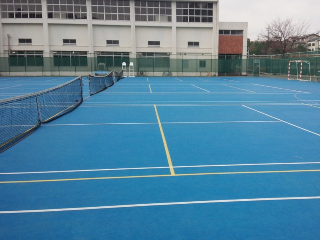 3面ハードコートで、雨上がりにもすぐ使えます。部活では、(硬式)テニス部が利用しています。