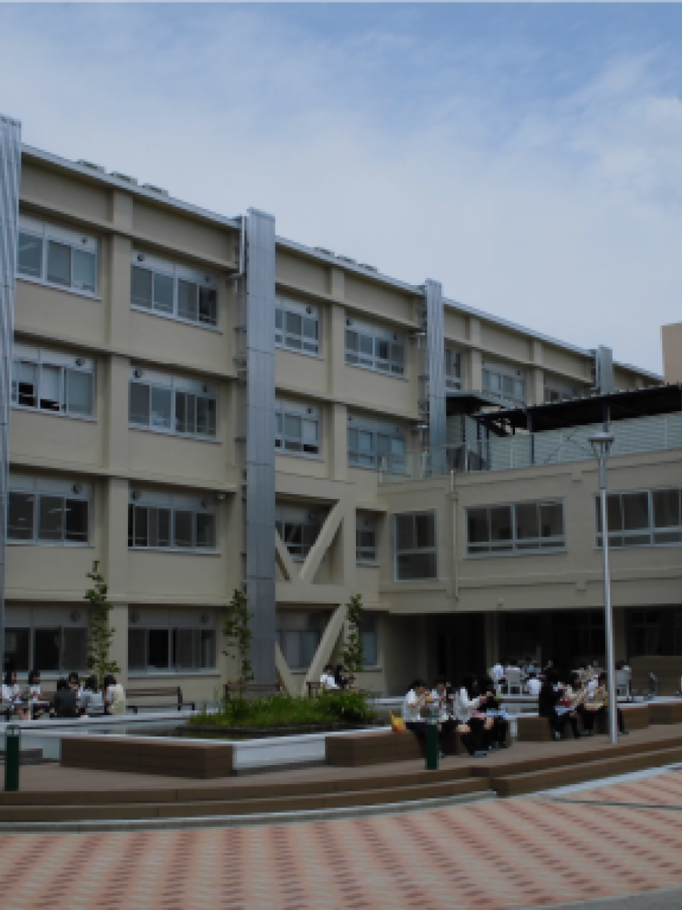 本校には中庭があり、生徒たちの憩いのスペースとなっています。また、池にはカルガモが訪れたこともあります。